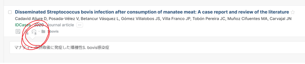 この部分にキーポイントを保存して、実際に論文や症例発表にする際に用いているのですが、、、これを1つ1つの文献をわざわざ開いて、コメントを確認しないといけないのが、けっこう大変です。